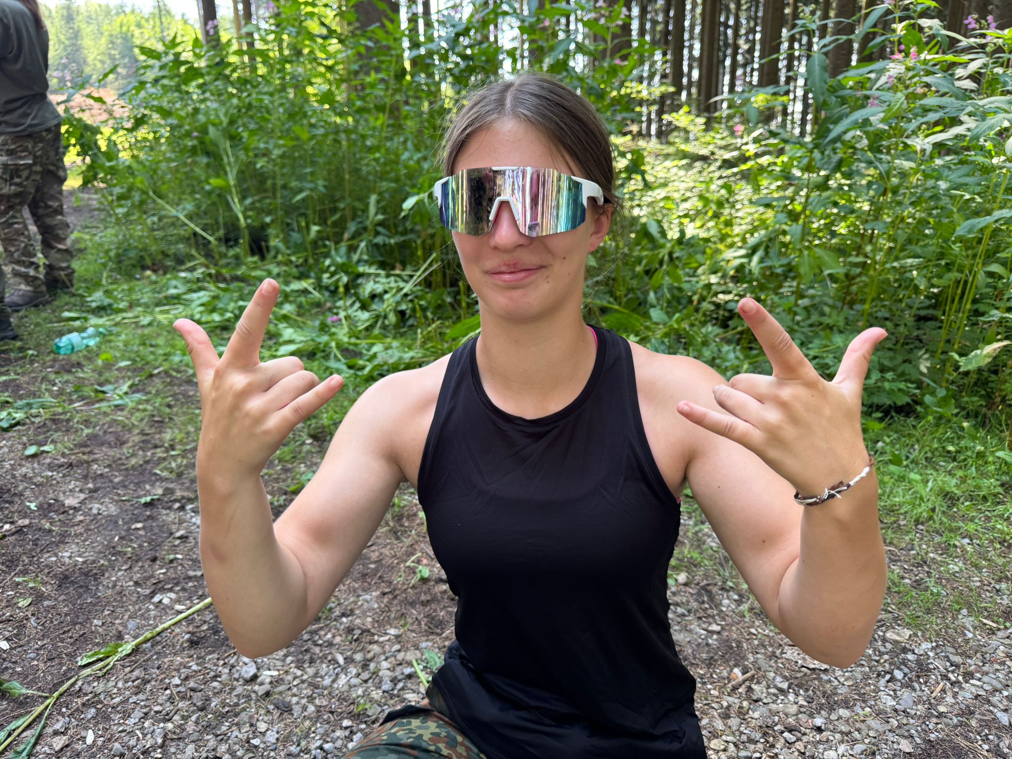 Zurück im Zeltlager ist Muriel für alle Angebote zu begeistern. Besonders bei Feder-, Volley-, Fußball, Tischtennis, Pokern/Lügen/Binokeln/ Wizard, ´´Kampf zu blinzeln´´ und weiteren Gemeinschaftsspielen ist sie immer am Start, lebt sich aus und gibt immer ihr Bestes. Natürlich darf auch nicht die Action bei den Geländespielen fehlen. Besonders in der Offensive bei HIG und CTF arbeitet sie sich verzückt durch den Wald und holt Punkte für ihr Team.